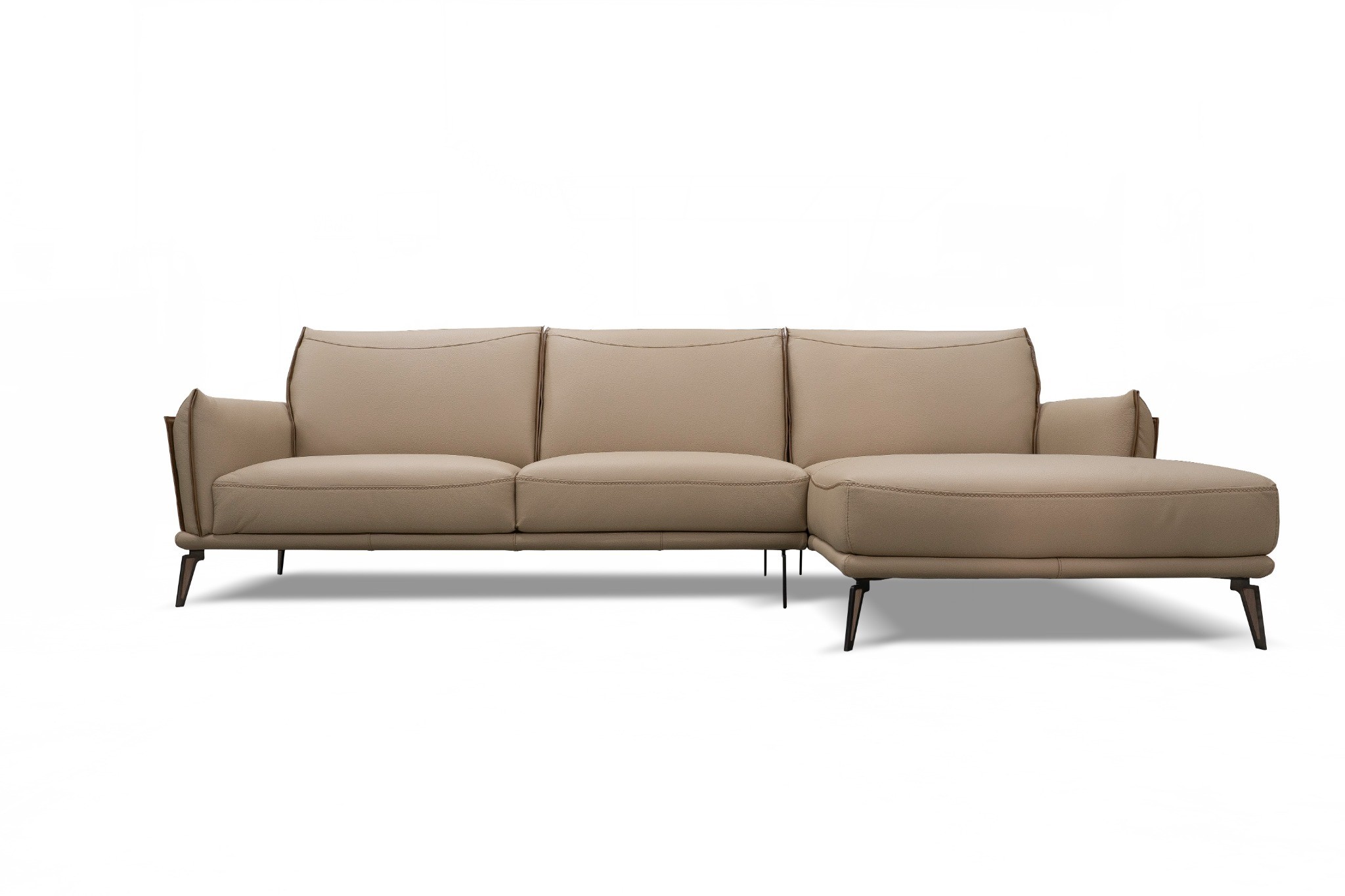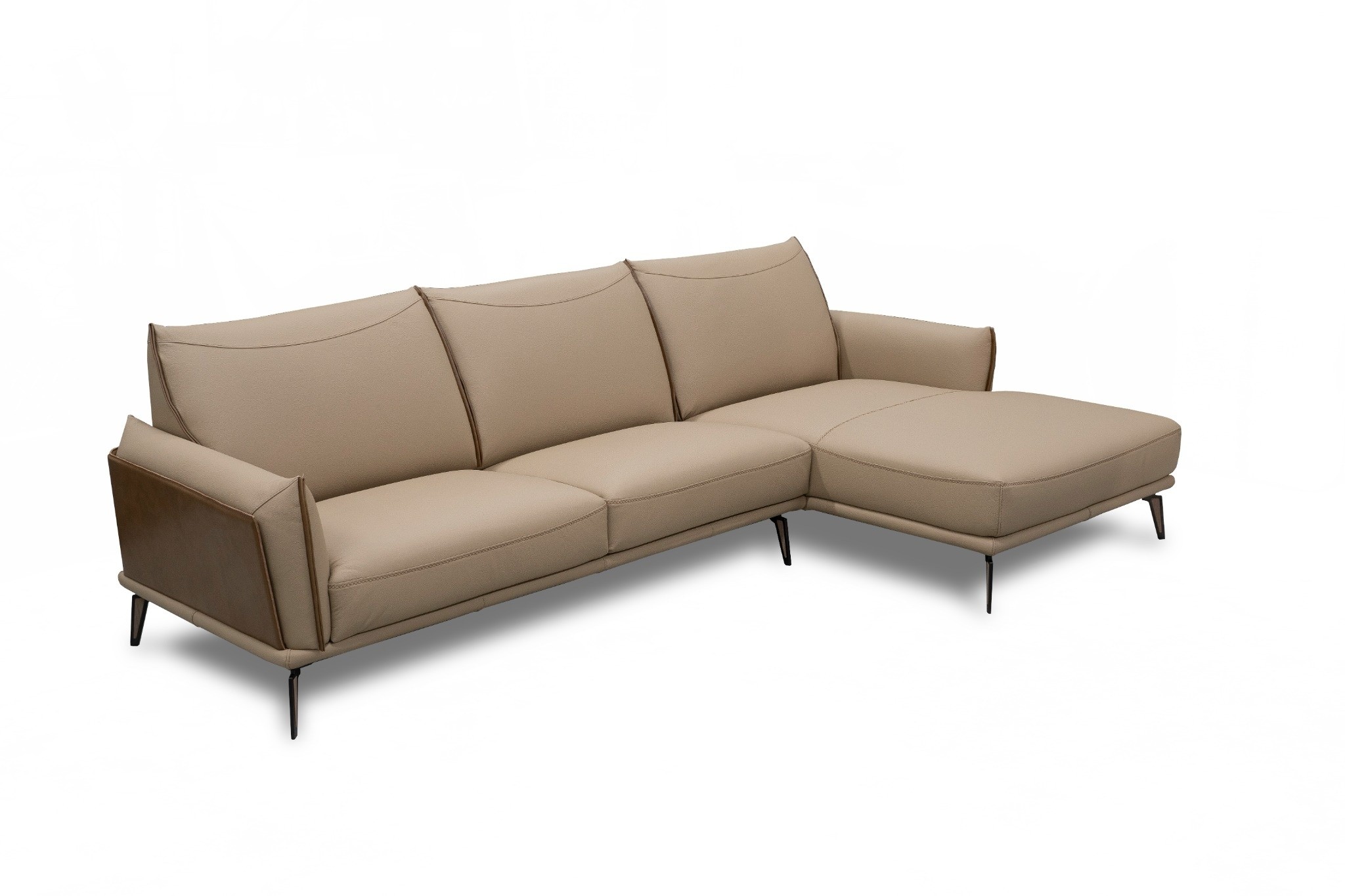 Elegant and refined, Libeccio inspires with its fresh modern design, attention to detail, and absolute comfort. Libeccio is fitted with select leather, enriched with tailored stitched seams, and an aesthetic addition of natural leather wrapping the armrests. Metal legs provide an additional aesthetic touch. Beautiful accessory pillows can be ordered. Additional model configurations can be found in the Product Sheet (the dimensions are in centimeters). Please contact us for more information.