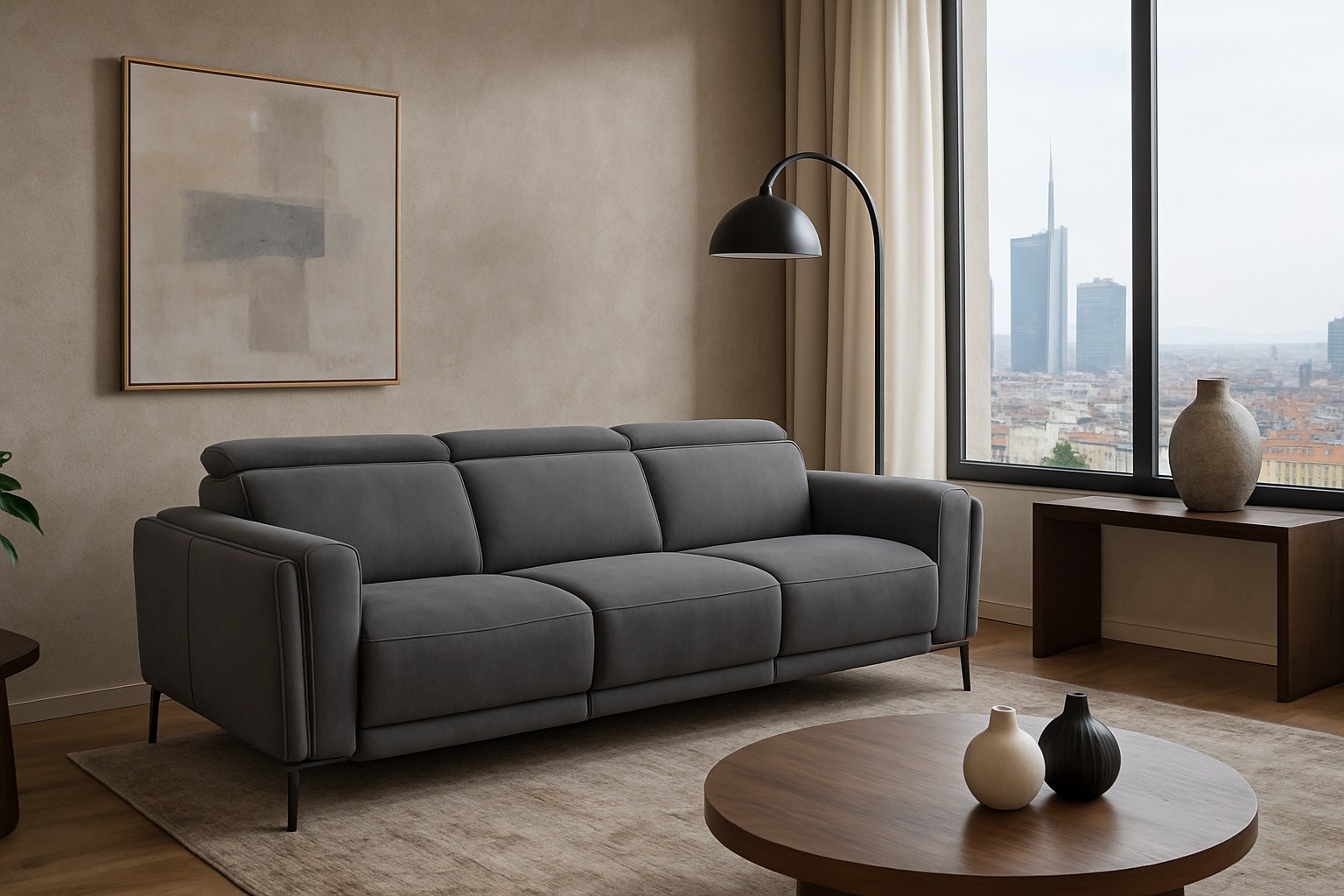 Prado is designed with essential and refined shapes offering maximum comfort. Tailor cut premium leather upholstery is beautifully complemented by seam stitching in contrasting color and slim armrests and legs balance the deep seat and cushioned seatback. Available with a motorized recliner system. Beautiful accessory pillows can be ordered. Additional model configurations can be found in the Product Sheet (the dimensions are in centimeters). Please contact us for more information.