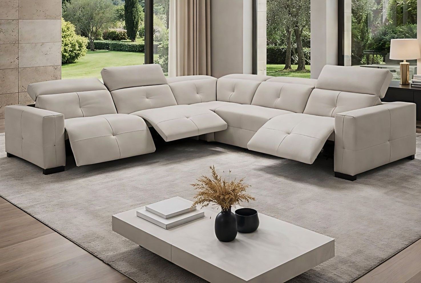 Experience modern Italian comfort with the Aldo Modular Sofa, with power recliners and adjustable headrests for effortless relaxation & style.